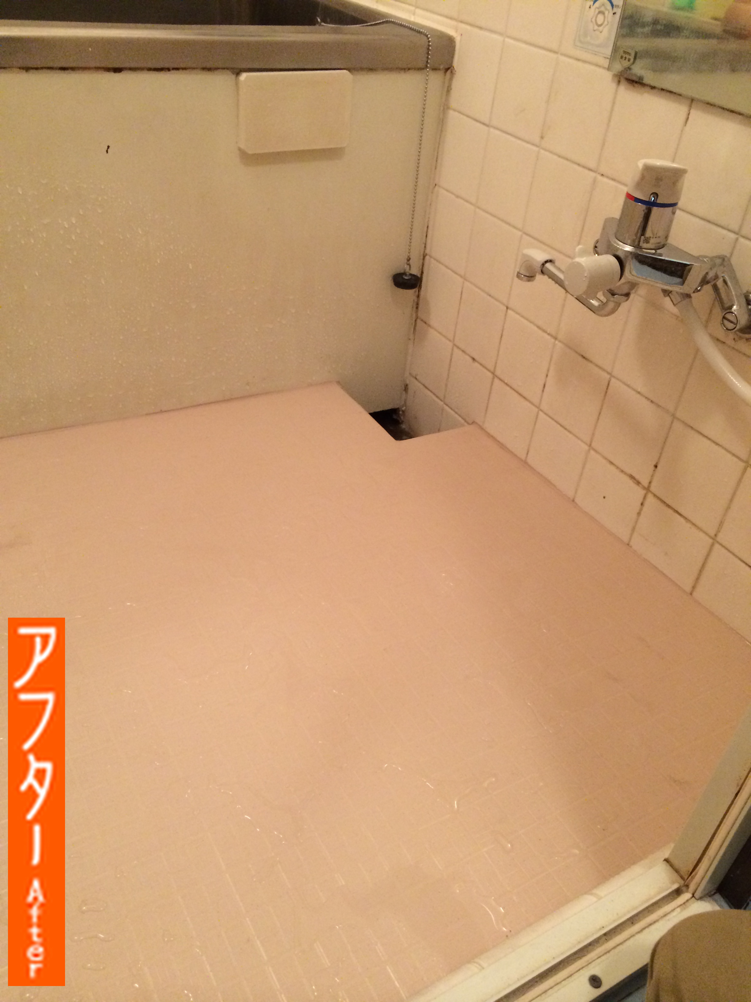 お風呂の床タイルの隙間の汚れが目立つのでキレイにしたいという要望でした。